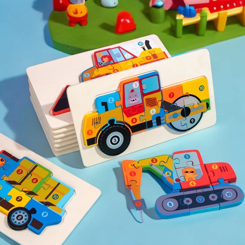 兒童益智卡通工程車拼圖