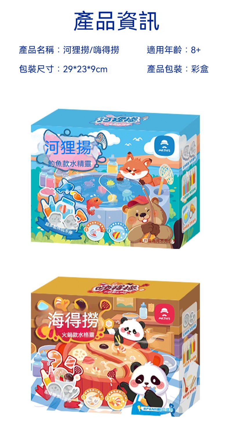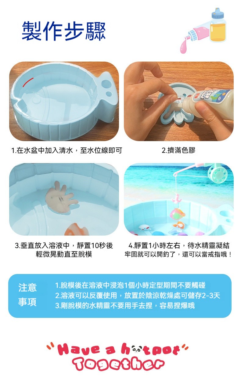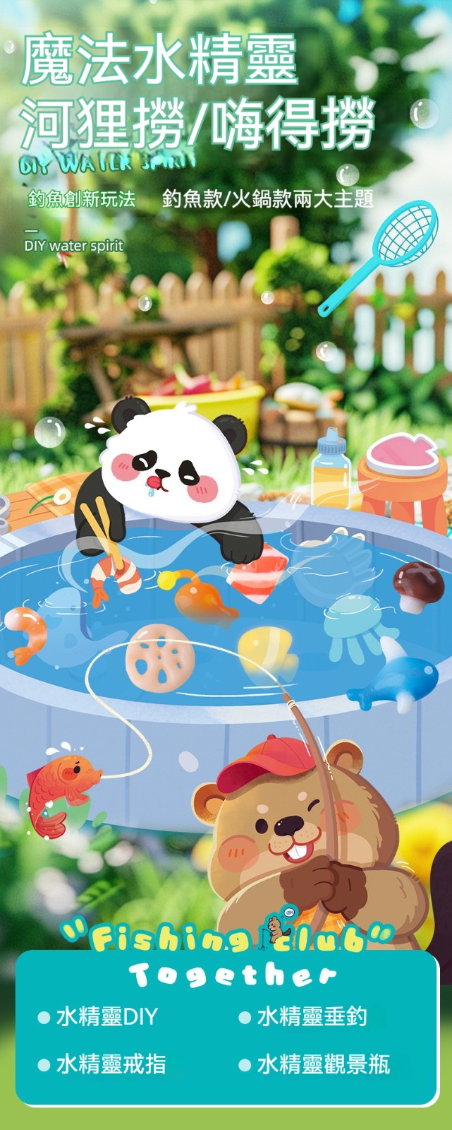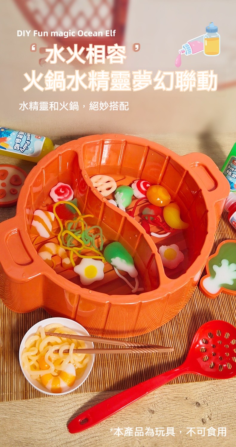 ✨將神奇的水魔法與孩子最愛的角色扮演(火鍋、釣魚、廚房遊戲)完美結合。讓寶貝親手創造出各種造型的水精靈,再用它們來煮火鍋、釣魚、做菜——自己的玩具自己做,玩起來更有成就感!✨